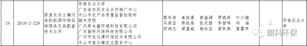 我司參與“修復農(nóng)田土壤污染的能源作物品種篩選及其配套技術應用項目”獲得2018年度廣東省農(nóng)業(yè)技術推廣二等獎